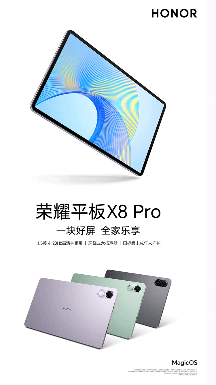 荣耀平板X8 Pro 11.5英寸 120Hz高刷2k护眼屏 多屏协同 娱乐影音办公学习平板电脑Pad 6+128GB WIFI 星空灰