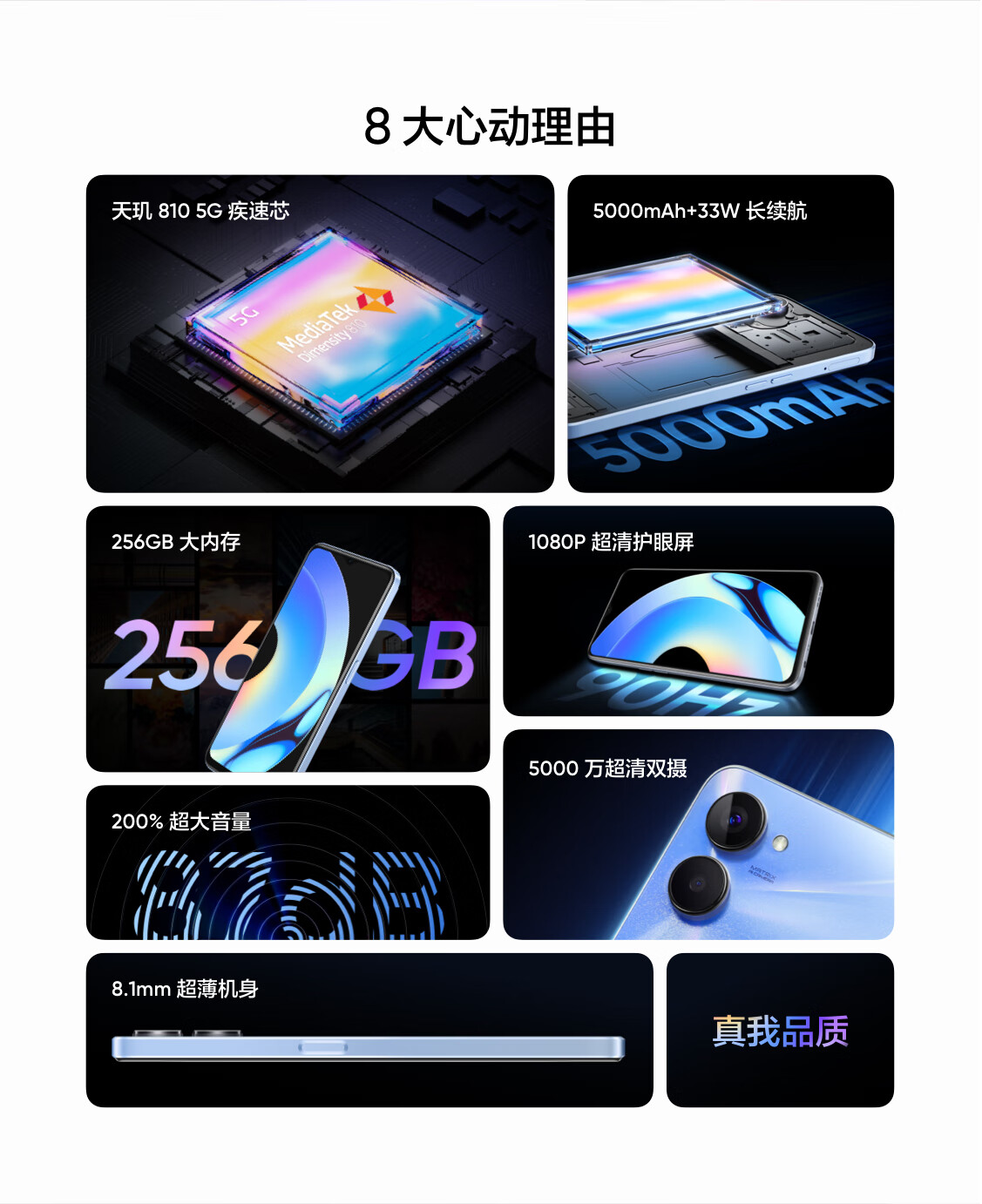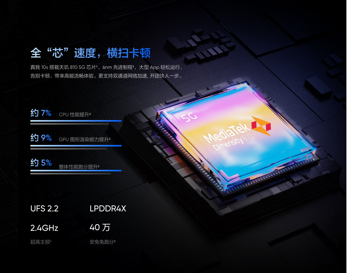 realme真我10s 天玑810 5G疾速芯 256GB超大内存 5000mAh大电池+33W智慧闪充 8GB+256GB 流光蓝 5G手机