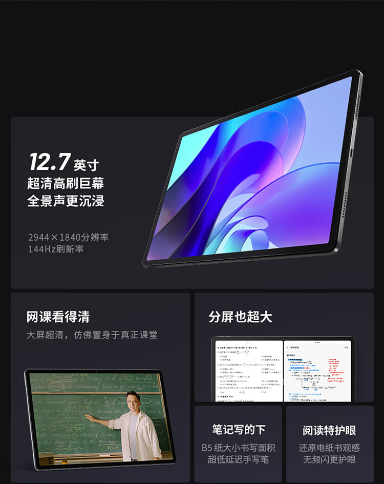 联想小新Pad Pro 12.7英寸高通骁龙870影音娱乐办公学习游戏平板电脑莱茵全局护眼 2.9k 144Hz 8+256WIFI 灰