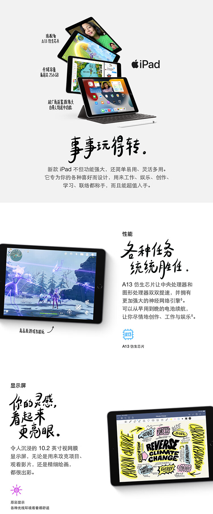 Apple iPad(第 9 代)10.2英寸平板电脑 2021年款(64GB WLAN版/学习办公娱乐游戏/MK2K3CH/A)深空灰色