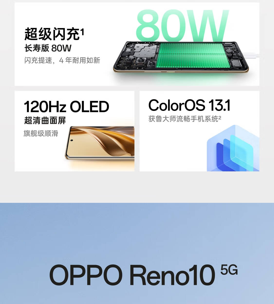 OPPO Reno10 8GB+256GB 溢彩蓝 6400 万水光人像 超光影长焦镜头 80W超级闪充 120Hz OLED 超清曲面屏 5G手机