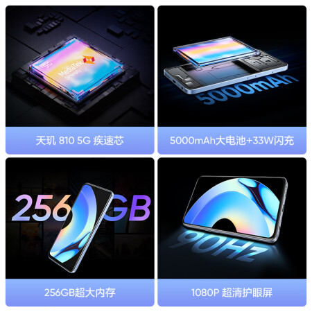 realme真我10s 天玑810 5G疾速芯 256GB超大内存 5000mAh大电池+33W智慧闪充 8GB+256GB 流光蓝 5G手机