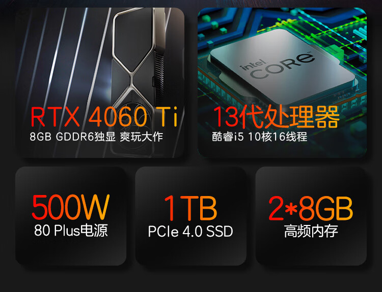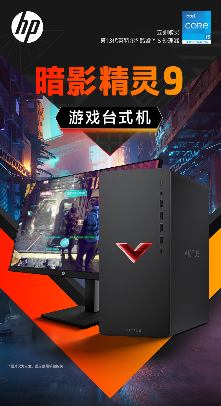 惠普HP 暗影精灵9 台式电脑 游戏台式机主机 设计师电脑 13代i5-13400F RTX4060ti 8G独显 16G 1TBSSD