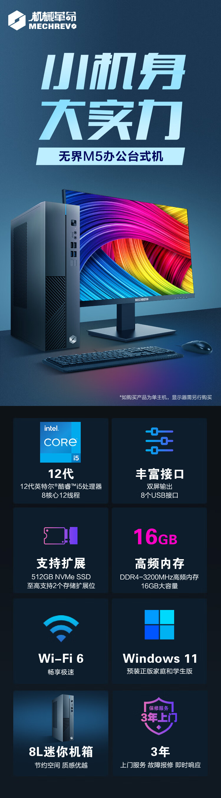 机械革命 无界M5商用办公台式电脑主机(I5-12450H 16G 512G SSD WiFi6)